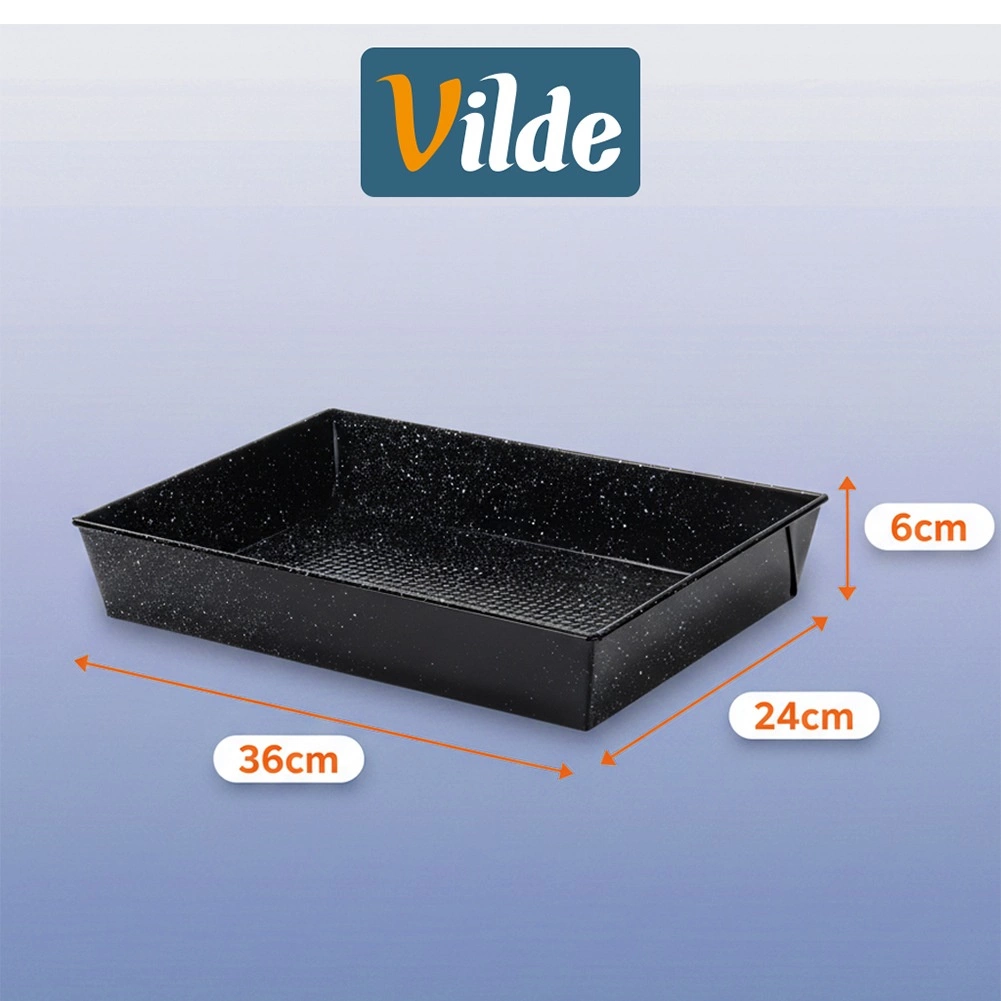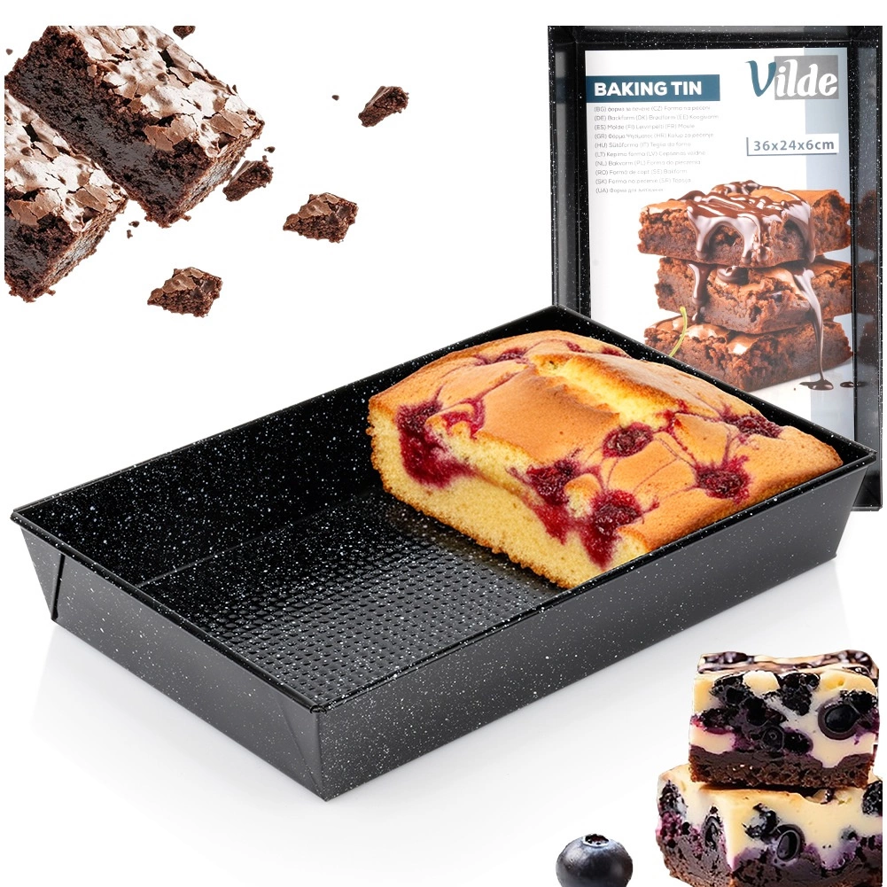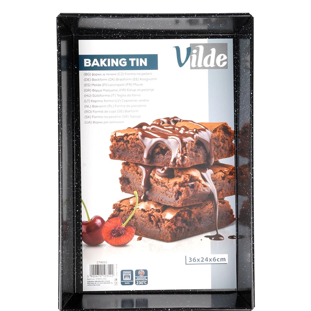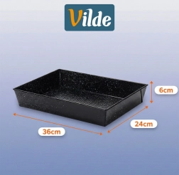 Wymiar 36 × 24 × 6 cm jest idealny na rodzinne desery, wytrawne zapiekanki, a także pieczenie mięsa i warzyw. Forma jest bezpieczna dla żywności i odpowiednia do piekarników gazowych oraz elektrycznych do 230 °C. Oryginalny produkt marki VILDE, wyprodukowany zgodnie z europejskimi standardami.