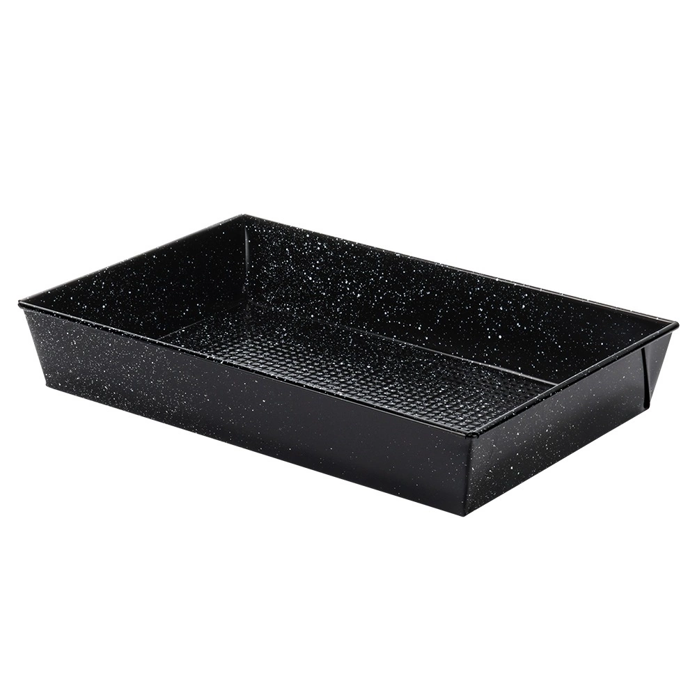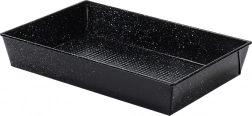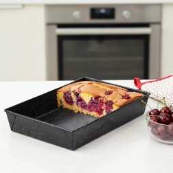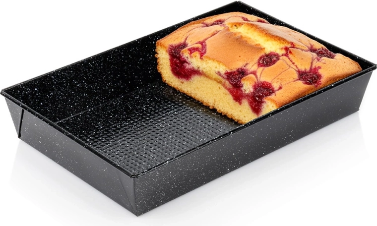 Praktyczna prostokątna forma do pieczenia o wymiarach 36 × 24 × 6 cm z wysokiej jakości stali węglowej z granitową, nieprzywierającą powłoką. Zapewnia równomierne rozprowadzanie ciepła i łatwe wyjmowanie potraw. Idealna na ciasta, pieczeń rzymską, zapiekanki oraz warzywa. Odporna na temperatury do 230 °C w piekarniku gazowym i elektrycznym.