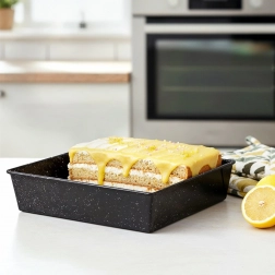 Ta granitowa forma jest idealna do pieczenia ciast, drożdżówek, zapiekanek, mięsa i warzyw. Stal węglowa doskonale przewodzi ciepło, a nieprzywierająca powłoka gwarantuje równomierne wypiekanie i łatwe wyjmowanie bez rwania ciasta.