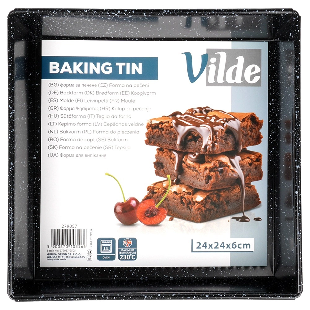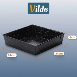 Dzięki wysokiej odporności temperaturowej do 230 °C sprawdzi się w codziennym użytkowaniu. Solidne wykonanie jest bezpieczne dla żywności i łatwe w czyszczeniu. Praktyczny kształt 24 × 24 × 6 cm zapewnia optymalną głębokość dla deserów i dań wytrawnych.