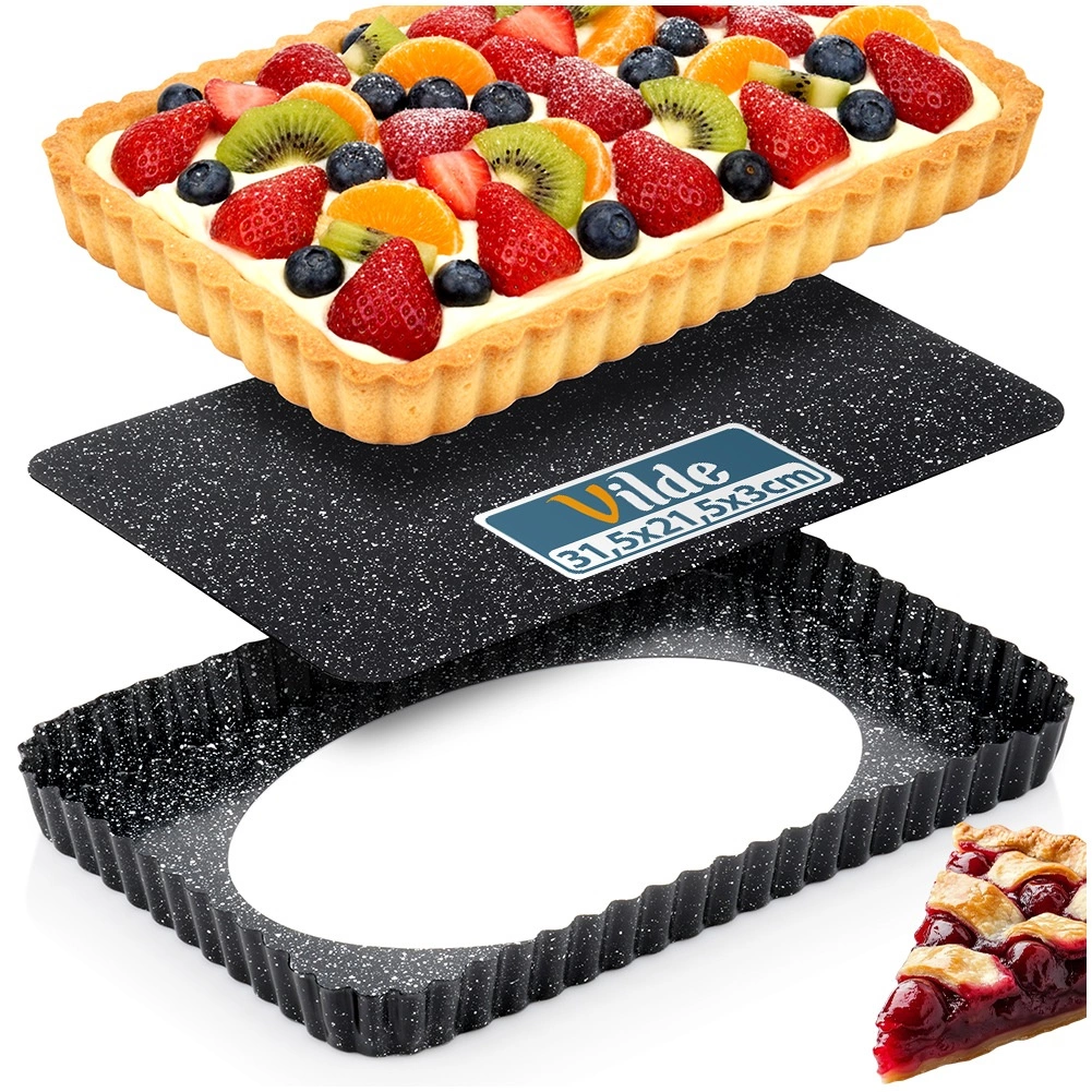 - Uniwersalny rozmiar 31,5 × 21,5 × 3 cm do tart, ciast, quiche i innych deserów