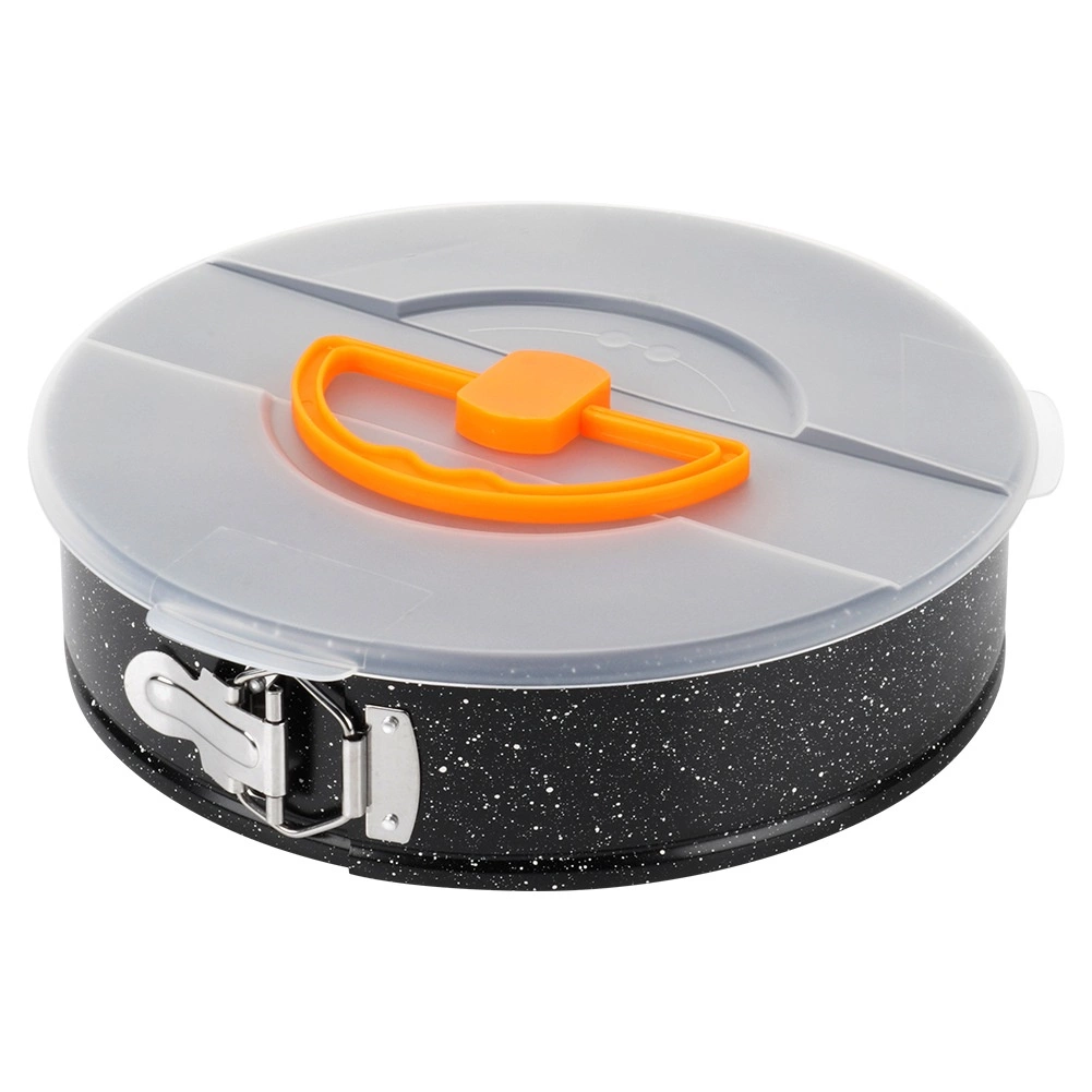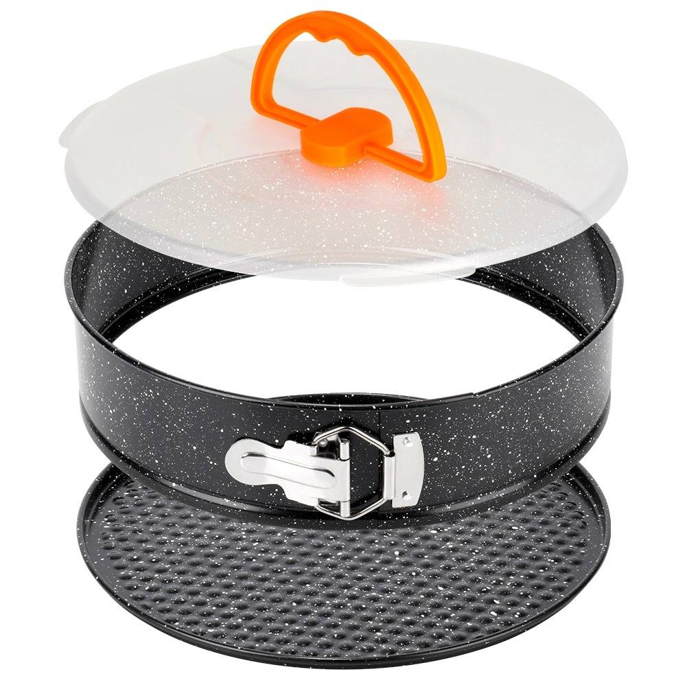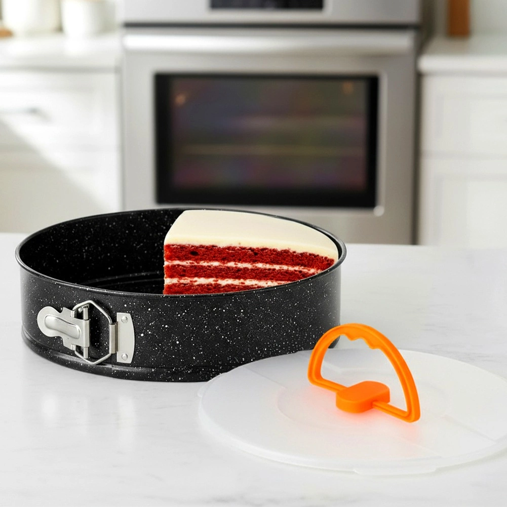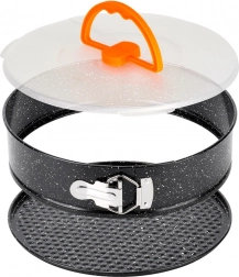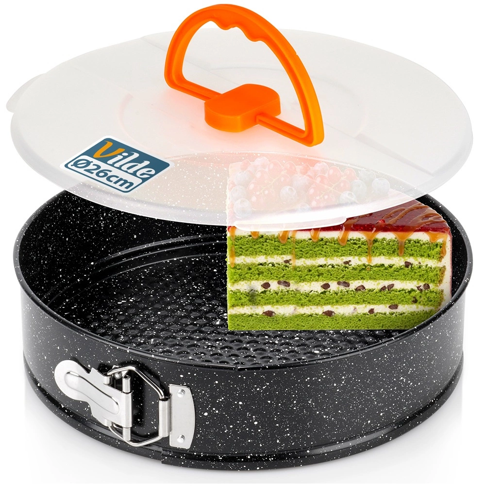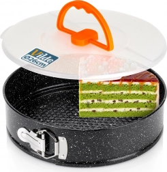 Dzięki odpinanemu brzegowi i wyjmowanemu dnu wyjmiesz gotowy deser bez uszkodzenia kształtu. W zestawie znajduje się przezroczysta pokrywka z solidnym uchwytem do bezpiecznego przechowywania w lodówce i wygodnego transportu – ciasto pozostaje chronione i nie wysycha.