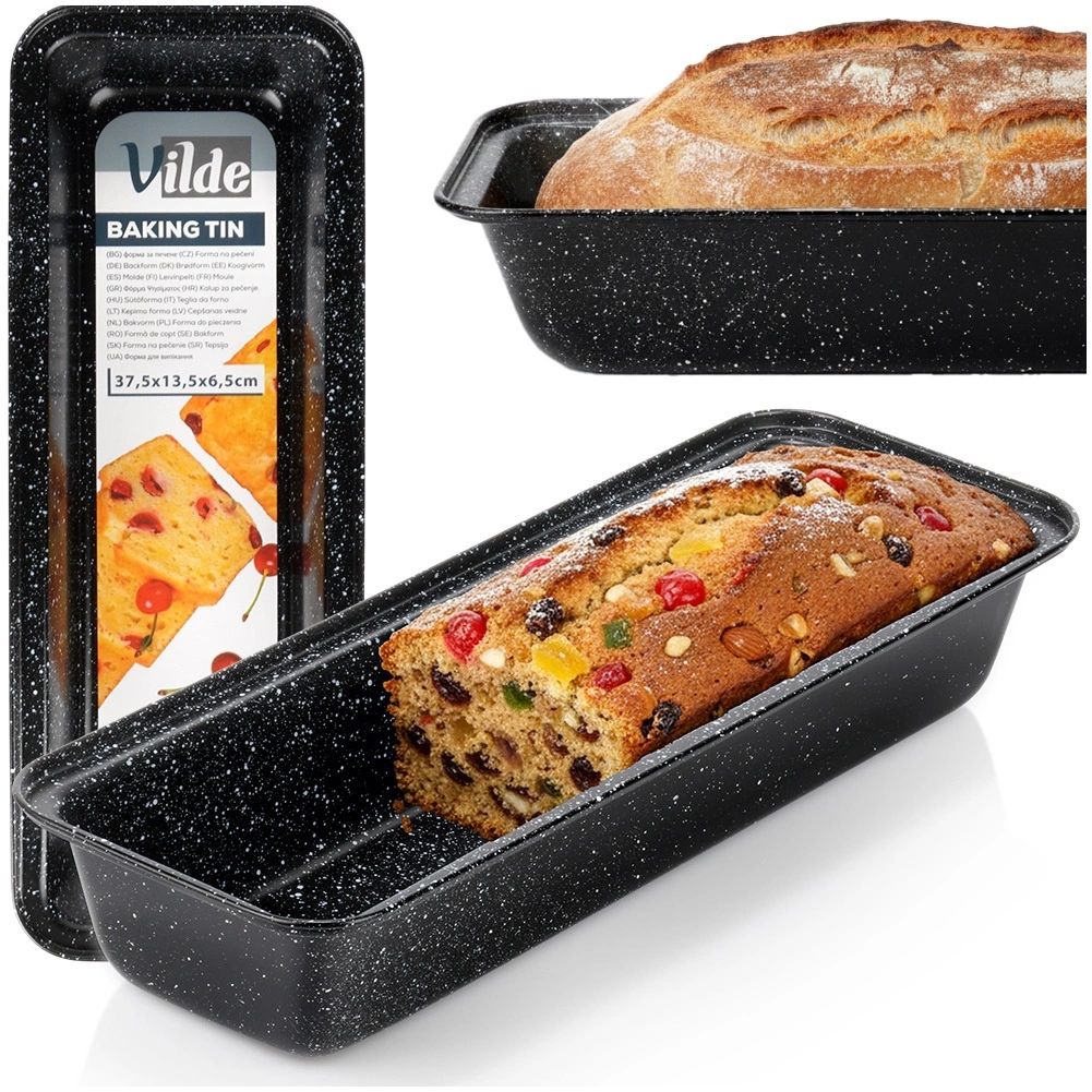 Praktyczna granitowa forma do chleba, babki lub keksa z wytrzymałą powłoką nieprzywierającą zapewnia równomierne pieczenie i łatwe wyjmowanie bez przypalania. Z wysokiej jakości stali węglowej, do piekarnika do 230 °C, idealna do codziennego pieczenia słodkich i słonych wypieków.