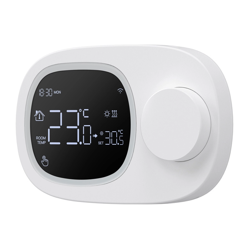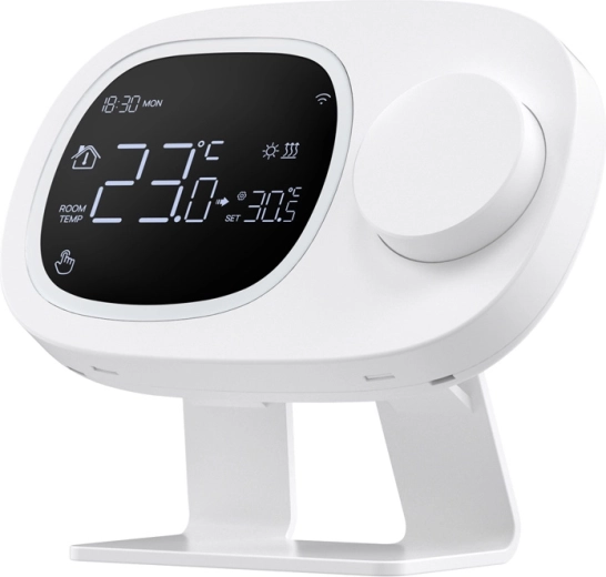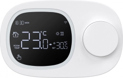 Planowanie jest elastyczne dzięki tygodniowym harmonogramom 5+2, 6+1 i 7 dni z maksymalnie 6 przedziałami czasowymi dziennie. Precyzyjne sterowanie zapewnia zakres 5–35 °C z możliwością kalibracji od −9,9 do +9,9 °C oraz regulowanym progiem reakcji. Oprócz Wi‑Fi wykorzystuje również RF433 dla stabilnej komunikacji na większą odległość.
