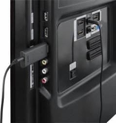 Podłącz dongle USB-A do telewizora, a słuchawki połączą się automatycznie – bez skomplikowanego parowania i konfiguracji.