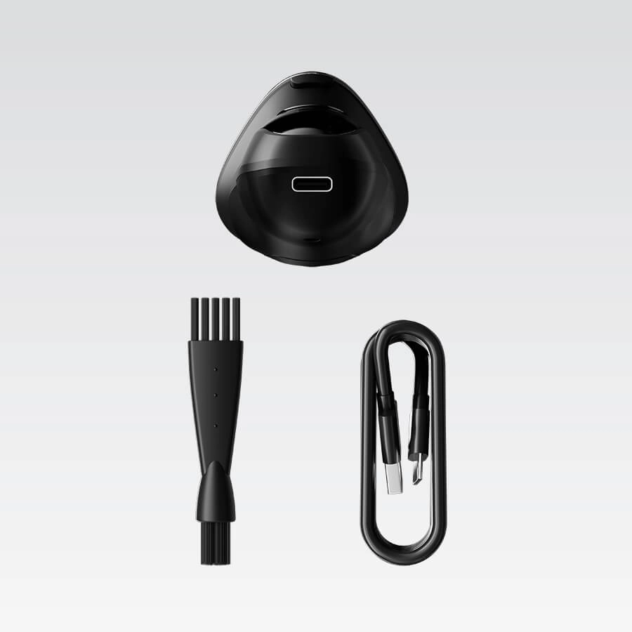Dzięki kompaktowym wymiarom 15,5 × 6 × 5,5 cm maszynka jest lekka, dobrze leży w dłoni i łatwo mieści się w kosmetyczce. W zestawie znajdziesz przewód USB do ładowania oraz szczoteczkę czyszczącą dla bezproblemowej pielęgnacji.