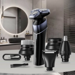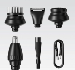 - 5 w 1: głowica goląca, trymer do włosów/brody, trymer do nosa i uszu, szczoteczka oczyszczająca, nasadka masująca
