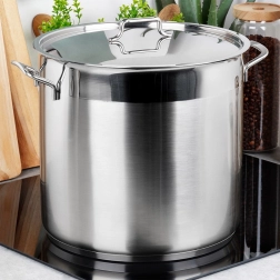 Wysokopojemny garnek nierdzewny ANETT o pojemności 18 l z solidną pokrywą jest idealny do gotowania zup, wywarów oraz duszenia dużych porcji. Dzięki wysokiej jakości stali 18/10, wielowarstwowemu dnu akutermicznemu oraz kompatybilności ze wszystkimi typami kuchenek, w tym indukcyjnymi zapewnia szybkie i równomierne rozprowadzanie ciepła. Solidne ścianki, wygodne uchwyty i łatwa pielęgnacja w zmywarce czynią go niezawodnym pomocnikiem zarówno do kuchni domowej, jak i profesjonalnej.