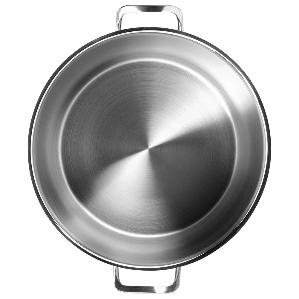 Wielowarstwowe dno akutermiczne doskonale akumuluje i równomiernie rozprowadza ciepło, co oszczędza energię i czas. Garnek jest odpowiedni do wszystkich typów kuchenek, w tym indukcyjnych. Dzięki dobrze wyprofilowanemu korpusowi łatwo się czyści i jest odpowiedni do zmywarki.