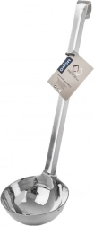 Praktyczna kuchenna chochla o pojemności 160 ml i długości 34 cm jest idealna do serwowania zup, sosów i gulaszy. Wykonana z wysokiej jakości stali nierdzewnej, jest trwała, lekka i łatwa w czyszczeniu. Dzięki długiemu uchwytowi wygodnie leży w dłoni i umożliwia bezpieczne oraz precyzyjne nalewanie. Możliwość zawieszenia na kuchennym relingu.