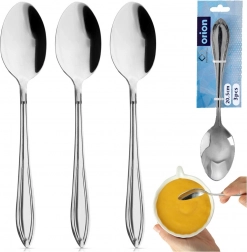 Zestaw 3 dużych łyżek stołowych CONIC to praktyczny dodatek do każdego domu i lokalu gastronomicznego. Wykonane z wysokiej jakości stali nierdzewnej w eleganckim, srebrnym wykończeniu, bezpiecznym w kontakcie z żywnością i łatwym w pielęgnacji.