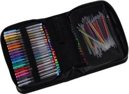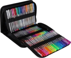 Odkryj uniwersalny zestaw do szkoły, biura i na czas wolny: 100 długopisów żelowych w bogatej palecie kolorów i efektów oraz 100 zapasowych wkładów. Przejrzyste składane etui na zamek utrzymuje każdy długopis na swoim miejscu, dzięki czemu wszystkie kolory masz zawsze pod ręką i bezpiecznie przechowane.