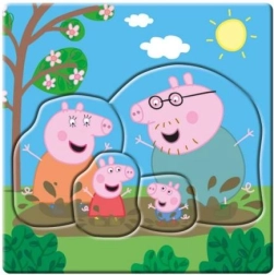 Puzzle z motywem Peppy są proste i idealne dla dzieci, które dopiero uczą się dopasowywać kształty.