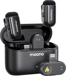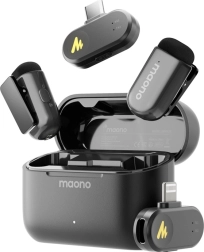 Dzięki certyfikatowi MFi gwarantowana jest pełna zgodność z iOS (w tym iOS 18), bez błędów i z możliwością jednoczesnego nagrywania i ładowania. Zasięg bezprzewodowej transmisji to nawet 100 metrów, a z etui ładującym zyskujesz do 30 godzin pracy (szybkie ładowanie: 5 minut = 1 godzina działania). Aplikacja Maono Link oferuje regulację wzmocnienia (do 32 dB), filtry oraz monitoring stanu.