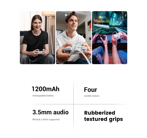 - Potrójna łączność: przewód (XBOX Series X|S, XBOX One), 2.4G (PC/Steam), Bluetooth (Android, iOS, Nintendo Switch)