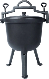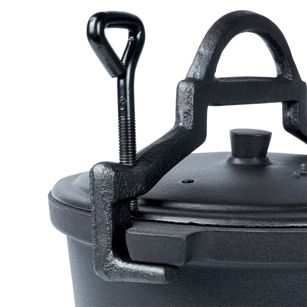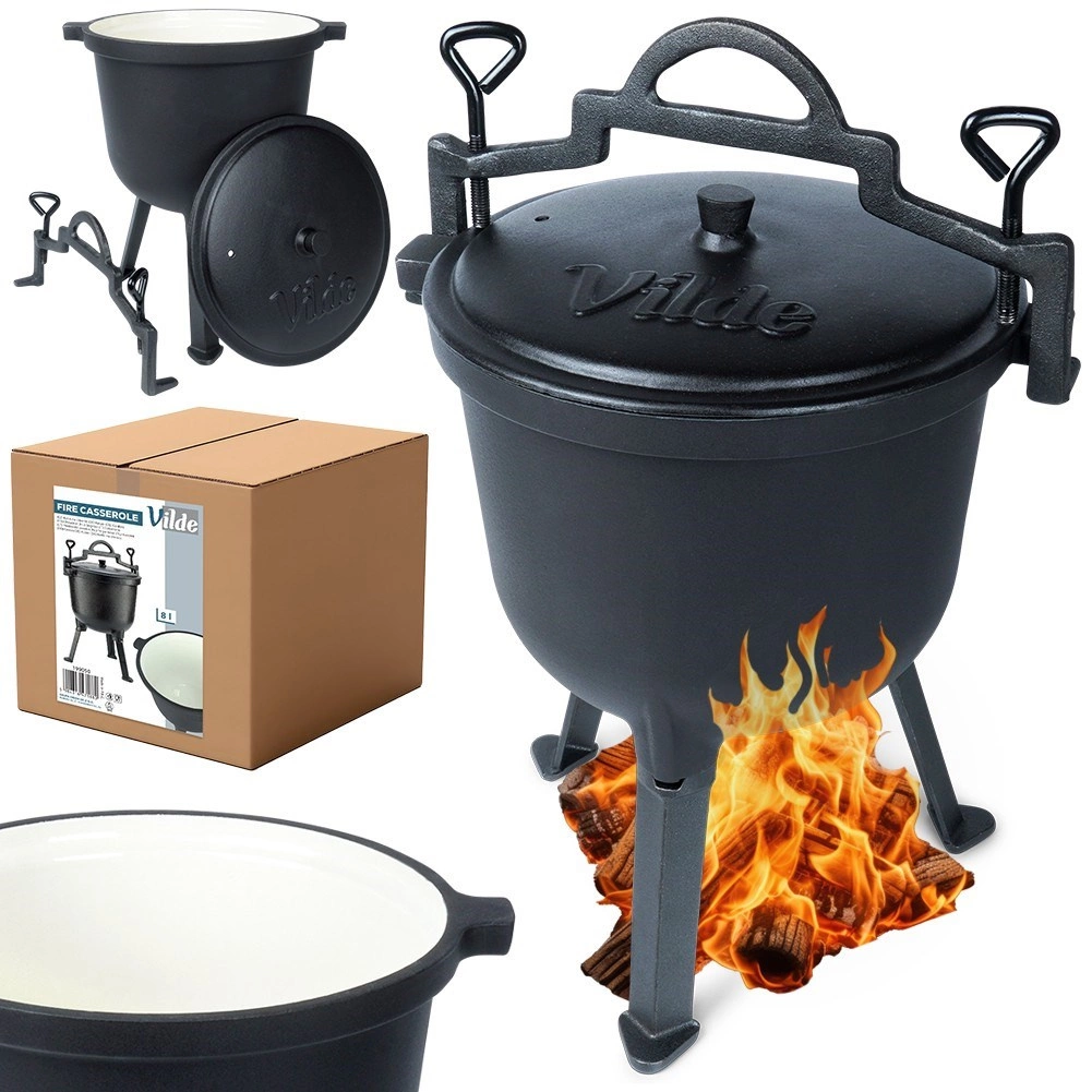 Dzięki pojemności 8 litrów jest idealny do gulaszu, zup, duszonego mięsa i warzyw. Równomierne rozprowadzanie ciepła skraca czas gotowania i podkreśla smak. Praktyczny górny uchwyt do zawieszania i przenoszenia, uzupełniony o boczne rączki, ułatwia manipulację w terenie.