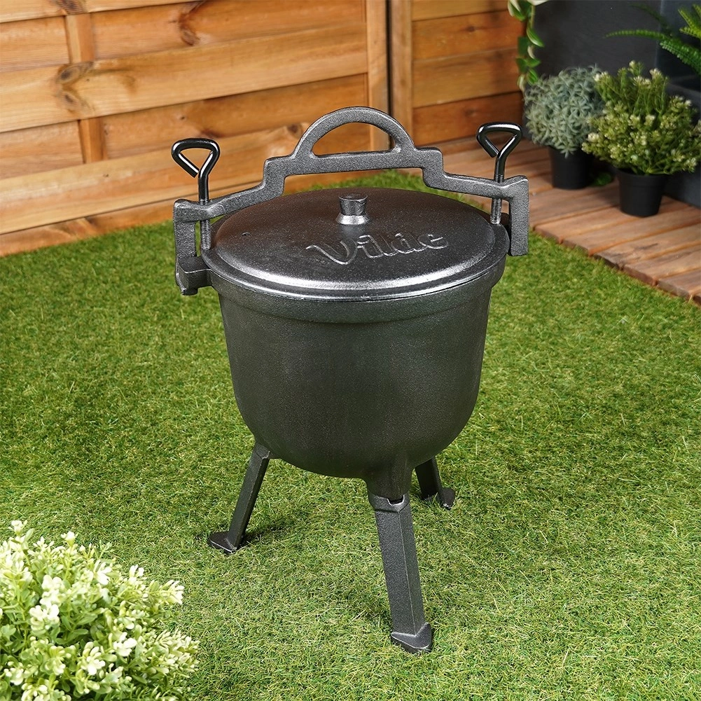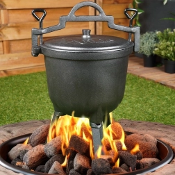 Trzy solidne nogi i możliwość zawieszenia nad płomieniem zapewniają bezpieczne i równomierne gotowanie w plenerze.