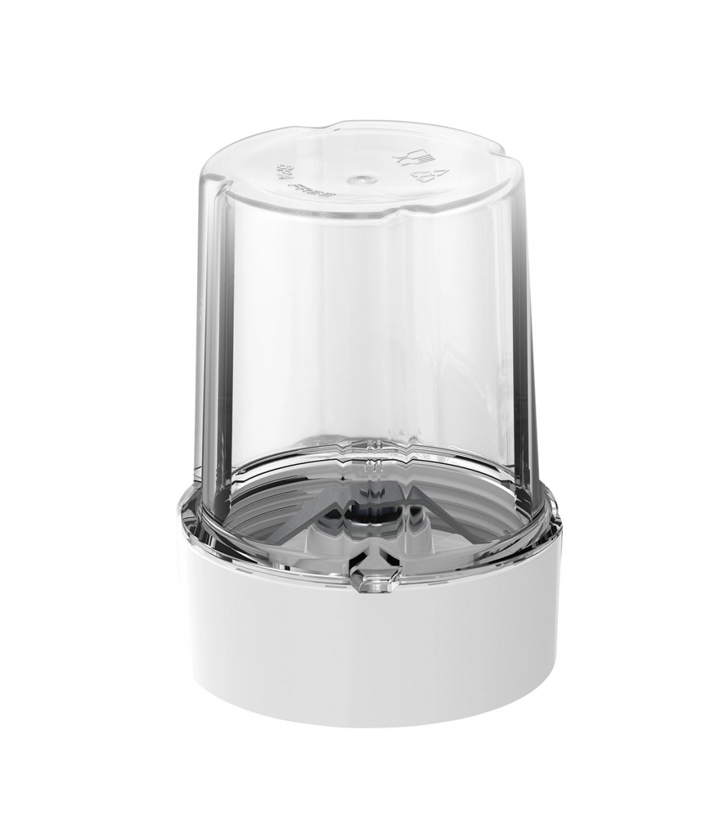 Butelki TO‑GO są wykonane z wytrzymałego Tritanu (bez BPA), odpornego na plamy, zapachy i wysokie temperatury, a przez długi czas zachowują przejrzystość. Stalowe ostrza są ostre, wyjmowane i gwarantują równomierne przetwarzanie składników. Praktyczny młynek z podwójnym nożem miele przyprawy, kawę i orzechy.