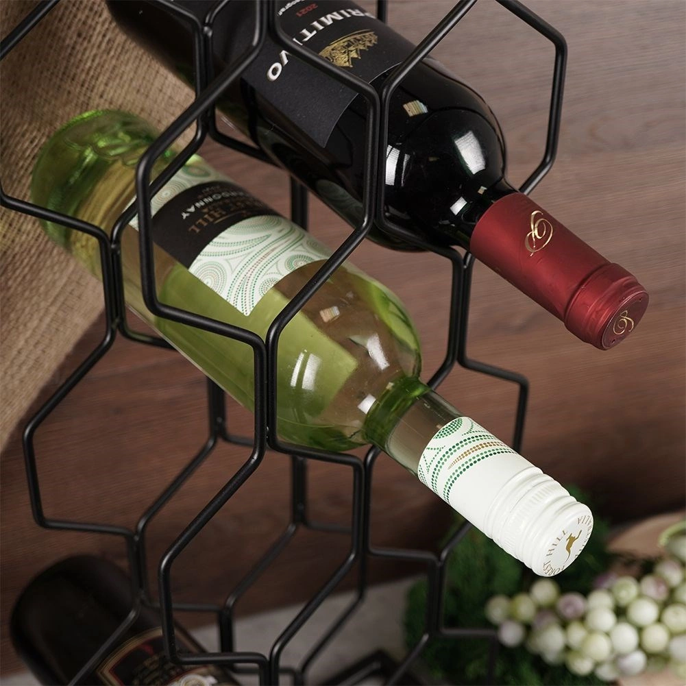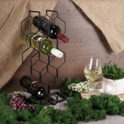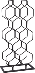 Ten nowoczesny stojak na wino z heksagonalną konstrukcją mieści do 8 butelek i przechowuje je poziomo, aby korki pozostawały naturalnie nawilżone. Minimalistyczny design w czerni łatwo łączy się z różnymi stylami wnętrz – od nowoczesnej kuchni po domowy bar.