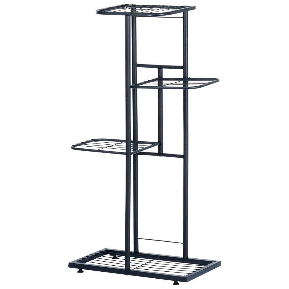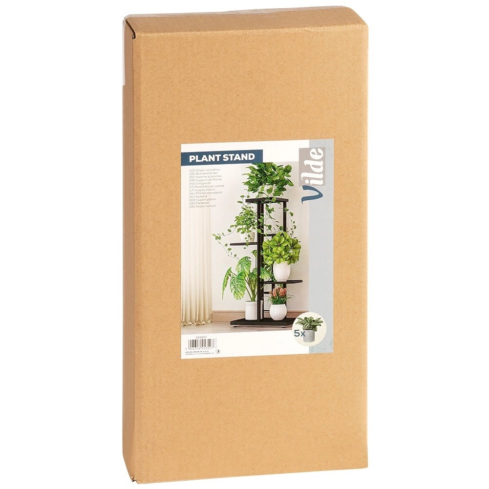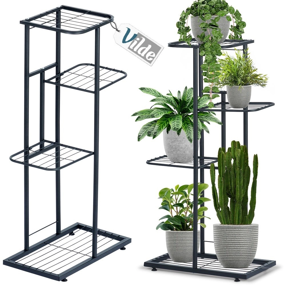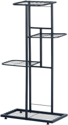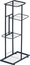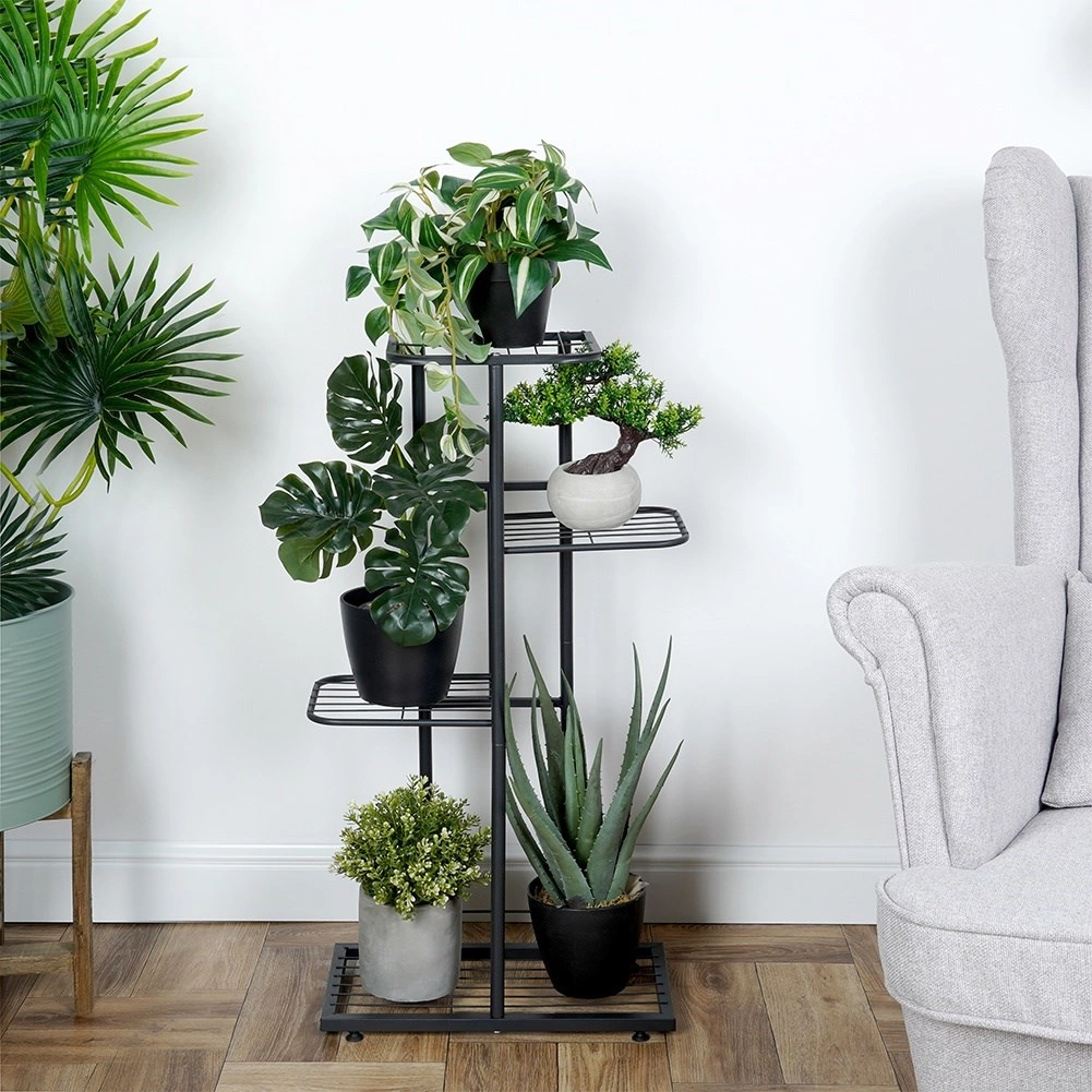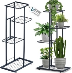 Kompaktowy stojak o wysokości 80 cm oferuje przemyślane wymiary półek dla różnych doniczek i dekoracji. Dolna prostokątna półka 41 × 22 cm pomieści dwie średnie rośliny, kolejne półki 22,5 × 19 cm są idealne na mniejsze doniczki, a górna powierzchnia 24 × 21,5 cm wyeksponuje Twoją dominującą roślinę soliterową lub wazon. Otwarta, ażurowa konstrukcja siatkowa zapewnia lepszą cyrkulację powietrza i odprowadzanie wilgoci.