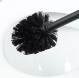 Utrzymuj toaletę higienicznie czystą dzięki wymiennej szczotce, która łączy trwałość, łatwą pielęgnację i nowoczesny wygląd. Czarne, gęste włosie z wytrzymałego plastiku zapewnia dokładne szorowanie także pod rantem muszli, a jednocześnie wygląda stale czysto. Dzięki uniwersalnym wymiarom łatwo umieścisz ją w większości standardowych pojemników na szczotkę WC.