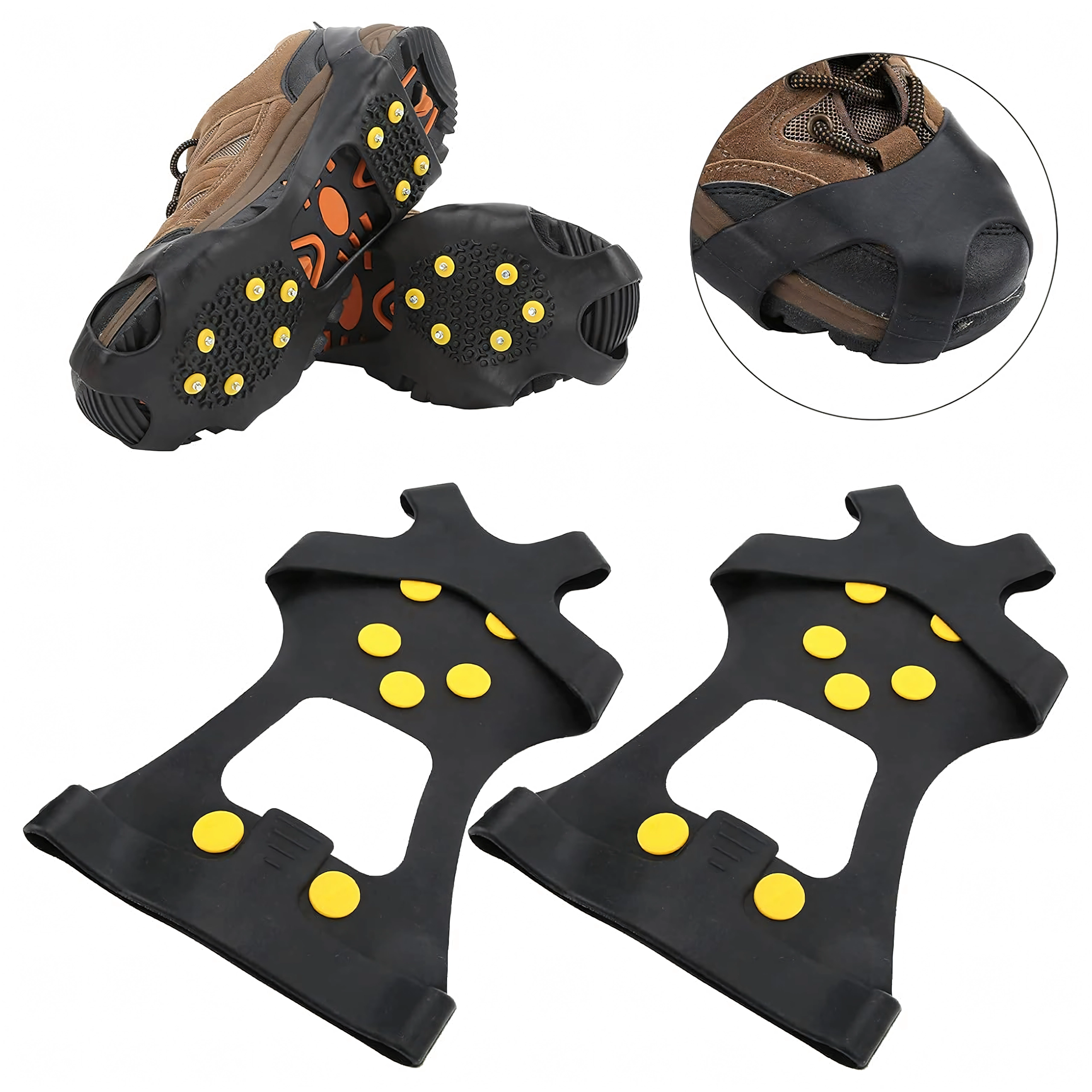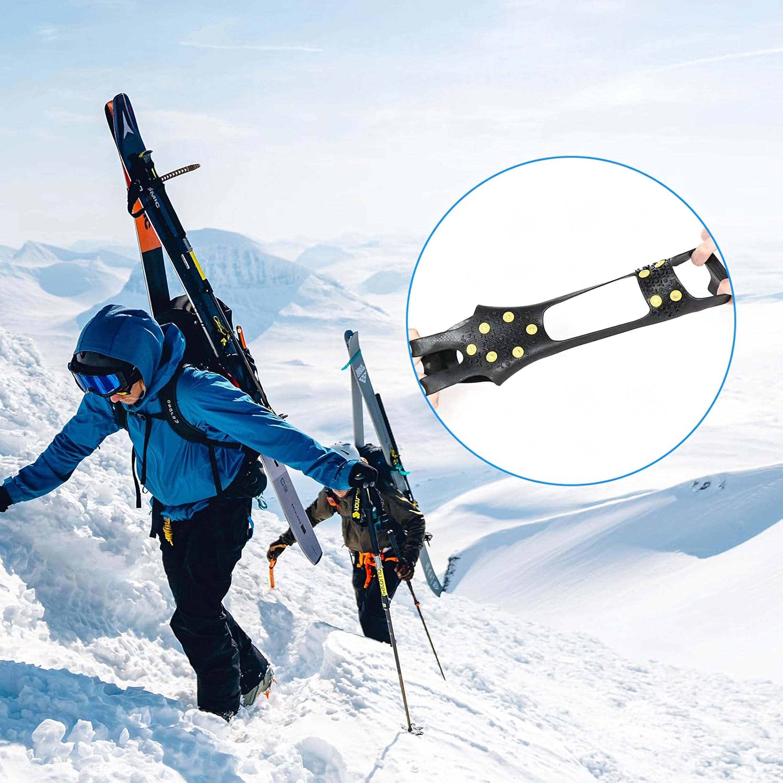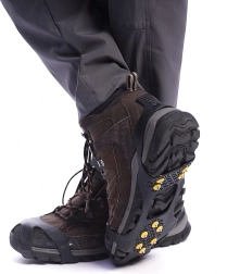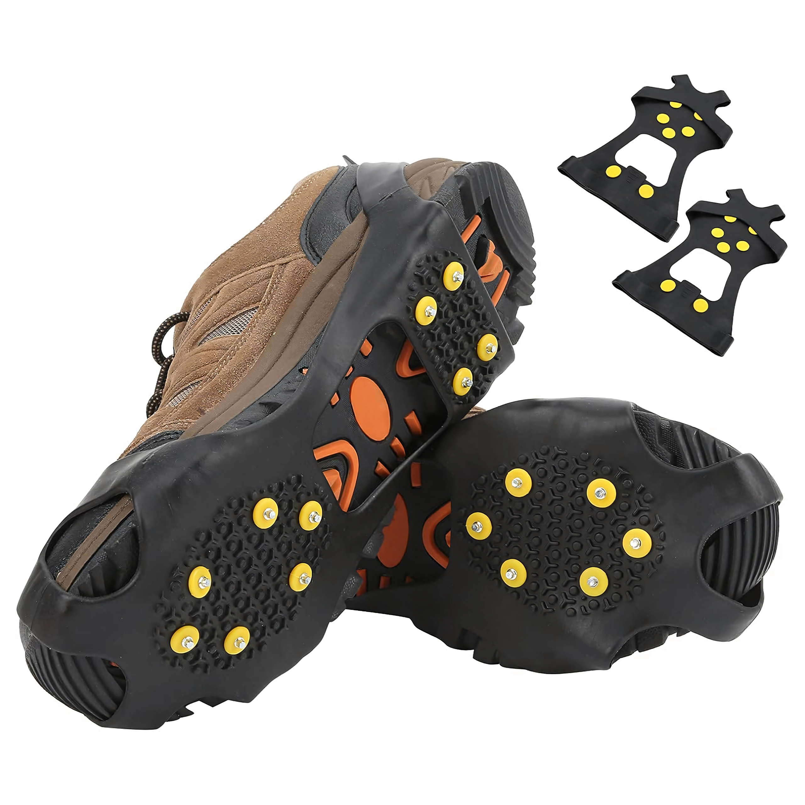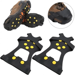 Dziesięć metalowych kolców na każdej nakładce zapewnia niezawodną przyczepność i stabilność podczas chodzenia po oblodzonym lub ubitym śniegu.
