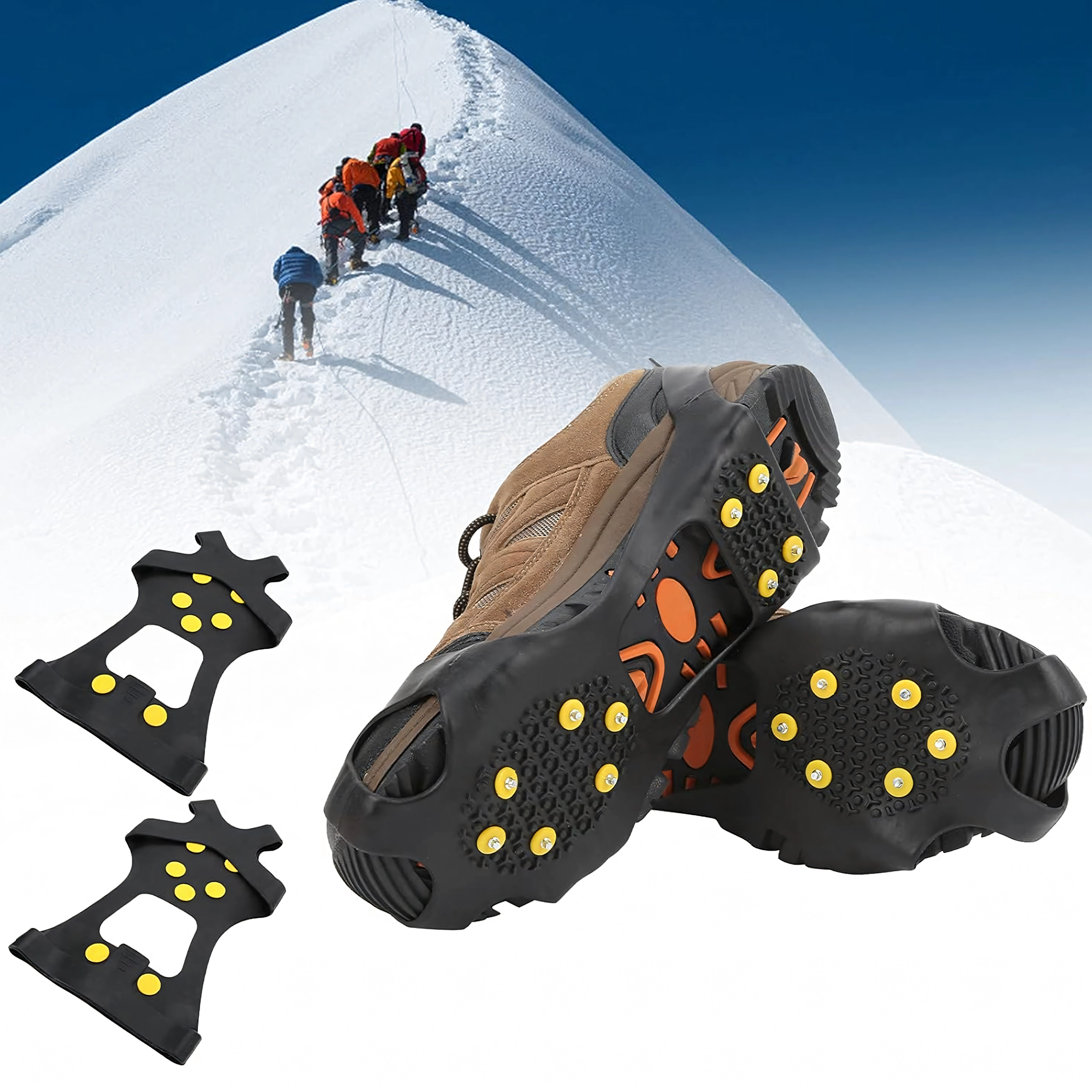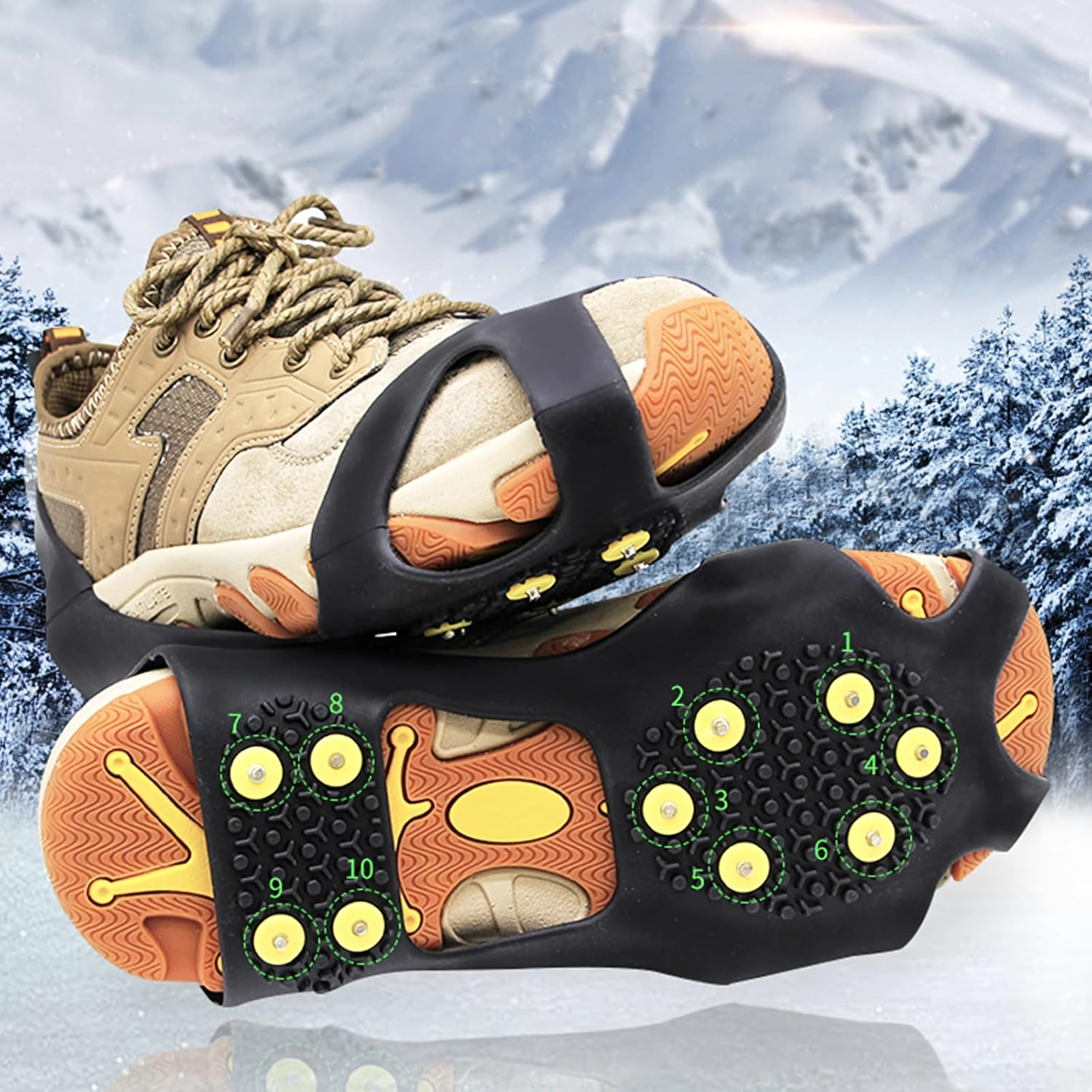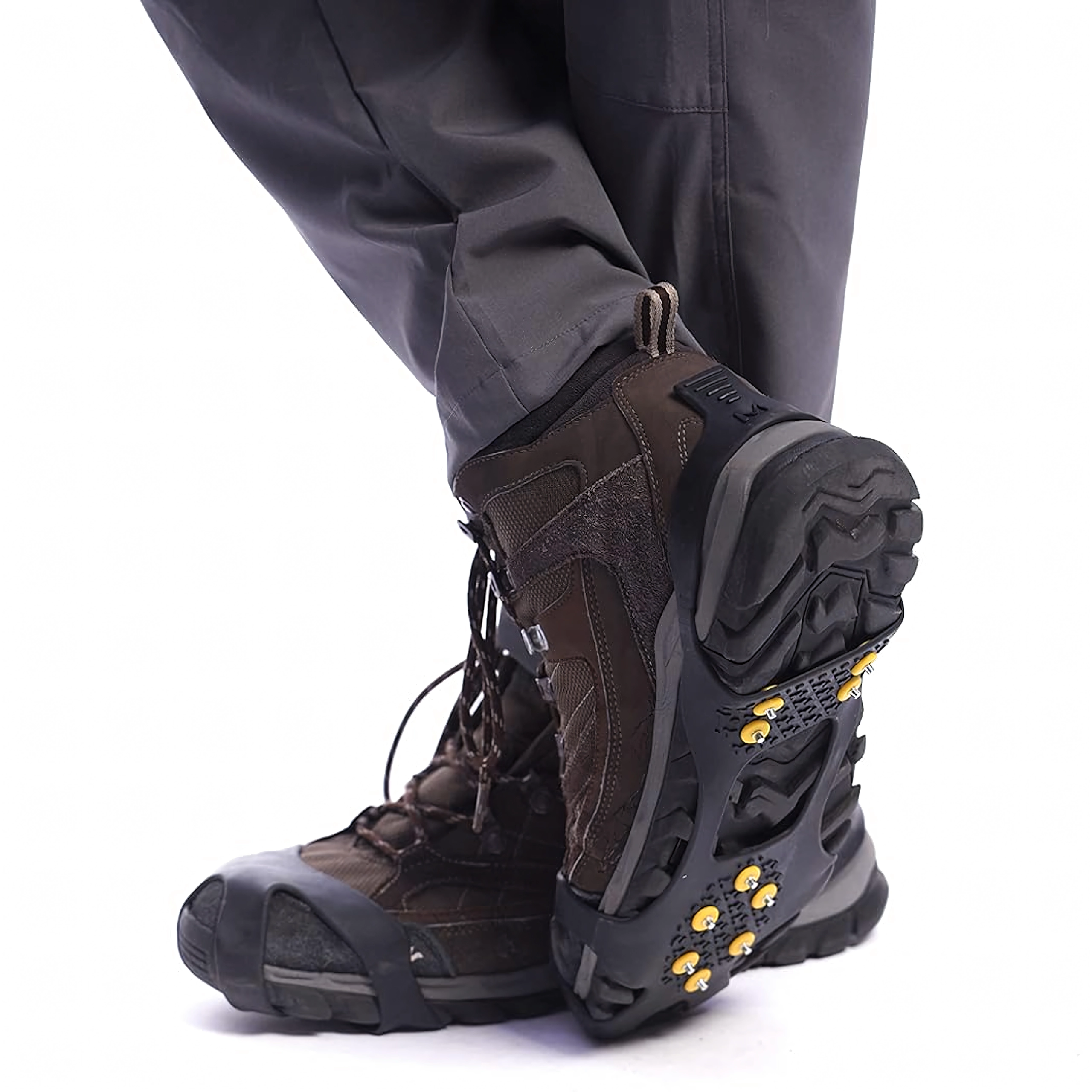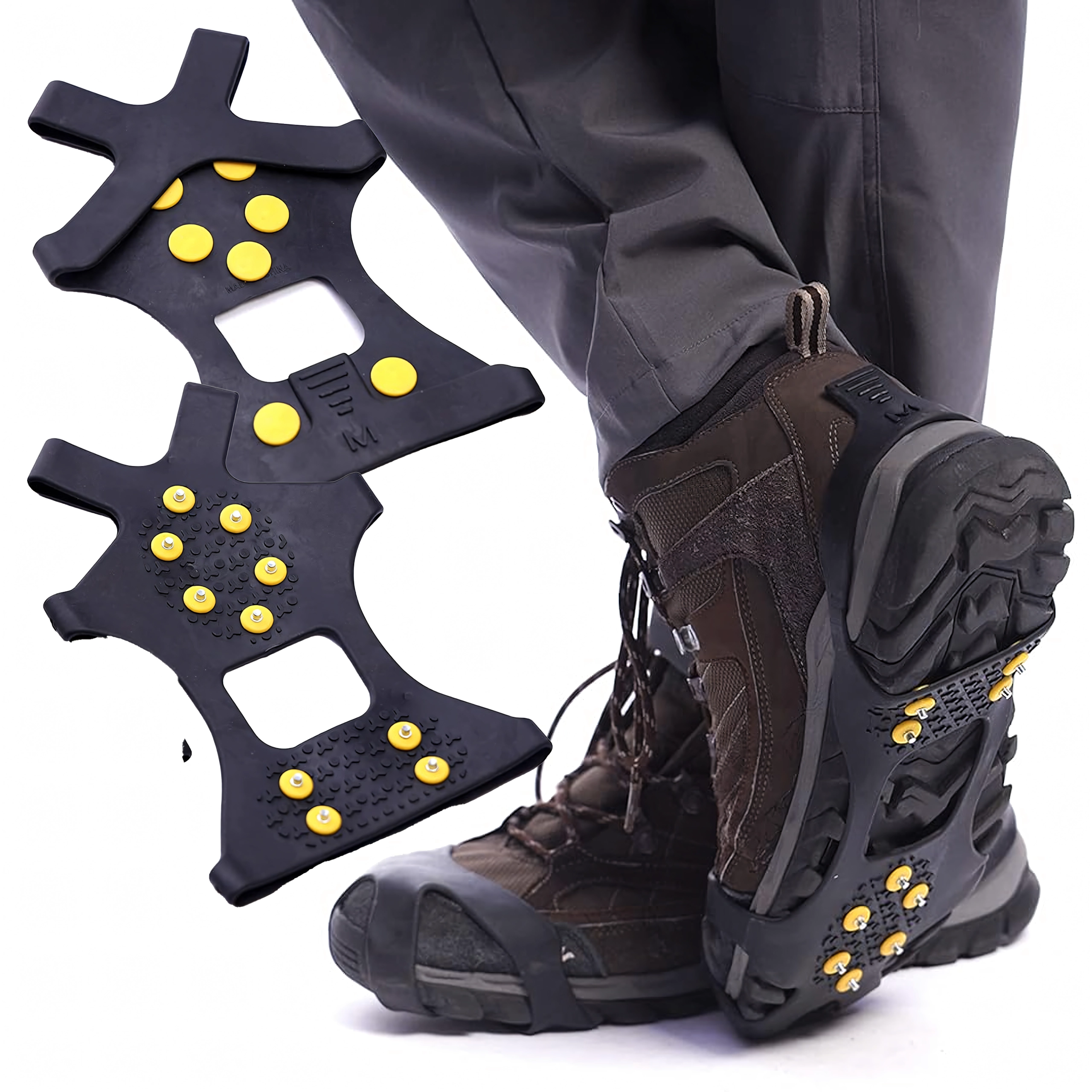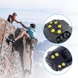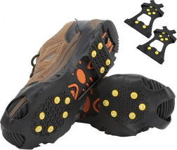 Niezawodne antypoślizgowe nakładki na buty z metalowymi kolcami zapewniające bezpieczny krok na śniegu, lodzie i błocie. Wykonane z trwałej gumy TPE i metalu, oferują doskonałą przyczepność, stabilność oraz łatwe zakładanie. 10 metalowych kolców daje pewność przy każdym kroku, nakładki są lekkie, elastyczne i kompaktowe – idealne na wędrówki, do pracy w terenie i do codziennego zimowego chodzenia.