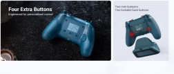 - Analogowe drążki TMR, triggery Hall Effect z mikrostykowymi ogranicznikami, optyczne ABXY, mechaniczny D‑pad