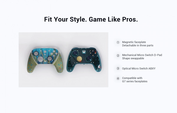 - Wymienny 3‑częściowy panel i dodatkowe D-pady dla maksymalnej personalizacji.