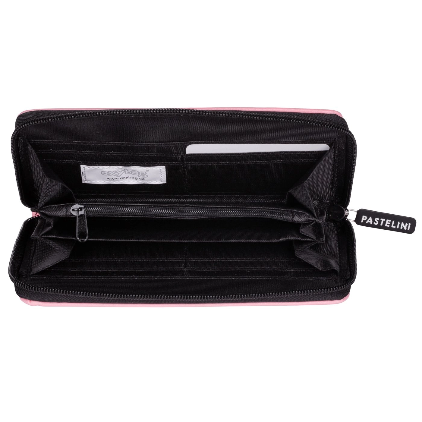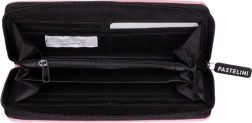 Stylowy różowy portfel z obwodowym zamkiem i minimalistycznym logo PASTELINI bezpiecznie pomieści banknoty i karty, a do tego świetnie leży w dłoni.