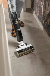 Skróć sprzątanie o połowę. Zintegrowane zasysanie usuwa zabrudzenia i rozlane płyny, wałki myją podłogę, a suszenie pozostawia powierzchnię niemal suchą – idealne do twardych podłóg i dywanów w trybie suchym.