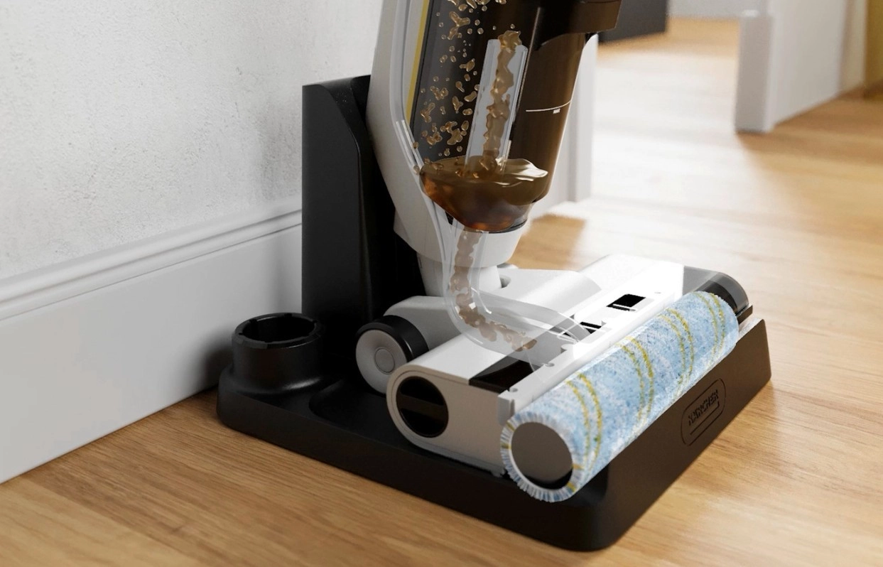 FCV 3 łączy siłę odkurzania, dokładne mopowanie i szybkie suszenie w jednym kroku, skracając czas sprzątania nawet o 50%. Zintegrowane zasysanie poradzi sobie z kurzem, okruchami i sierścią zwierząt, podczas gdy obrotowe wałki myją podłogę i pozostawiają ją niemal suchą. Dzięki lekkiej konstrukcji i zwrotnej głowicy wygodnie posprzątasz także wzdłuż krawędzi i w narożnikach.