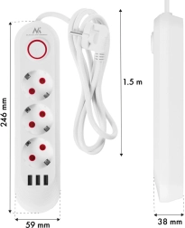 Zintegrowany wyłącznik z kontrolką daje natychmiastową kontrolę nad zasilaniem, a osłony bezpieczeństwa chronią przed przypadkowym kontaktem. Wyjścia USB oszczędzają miejsce i gniazda – nie musisz szukać osobnych ładowarek.