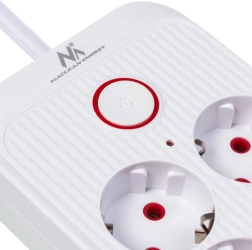 Zintegrowany przycisk z diodą pozwala jednym naciśnięciem wyłączyć lub włączyć wszystkie podłączone urządzenia. Zasłony ochronne chronią przed przypadkowym dotykiem.