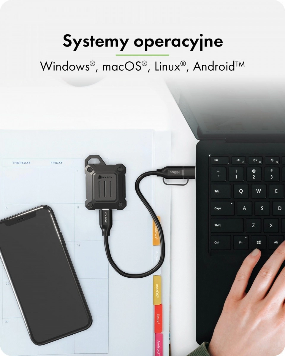 - Wytrzymała metalowa obudowa ze stopu cynku – solidność, długa żywotność i ochrona SSD.