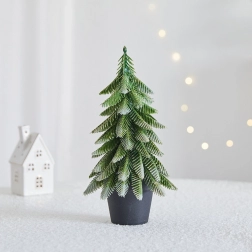 Kompaktowa, dekoracyjna choinka o wysokości ok. 22 cm w eleganckiej doniczce wprowadzi do wnętrza zimowy i świąteczny nastrój. Gęste gałązki ze srebrnym, mroźnym efektem prezentują się stylowo, a dzięki stabilnej podstawie łatwo ją ustawić na komodzie, stole czy parapecie. Bezobsługowa dekoracja odpowiednia do domu i biura.