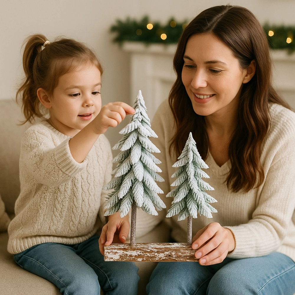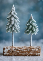 Wnieś do wnętrza zimowy klimat dzięki eleganckiej dekoracji – dwie ośnieżone mini jodełki na naturalnej drewnianej podstawie. Realistyczna faktura igliwia i delikatne białe flokowanie tworzą autentyczny zimowy efekt. Idealna na stół, komodę lub półkę jako stylowa świąteczna dekoracja w rustykalnym duchu.