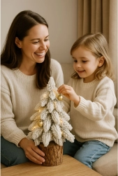 Wprowadź do wnętrza zimowy urok dzięki tej kompaktowej choince o wysokości 20 cm. Jej miękkie, puszyste gałązki z efektem śniegu oraz naturalna drewniana podstawa tworzą przytulną, świąteczną atmosferę w rustykalnym stylu. Idealna na stół, półkę, komodę czy biurko oraz do świątecznych aranżacji w domu i biurze.