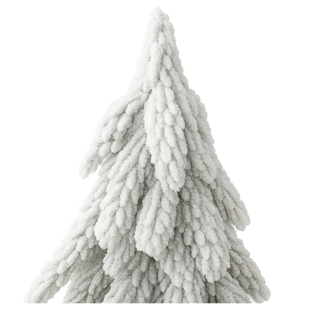 Puszysta tkanina przypominająca ośnieżone igliwie nadaje choince autentyczny zimowy wygląd i przyjemną w dotyku fakturę.