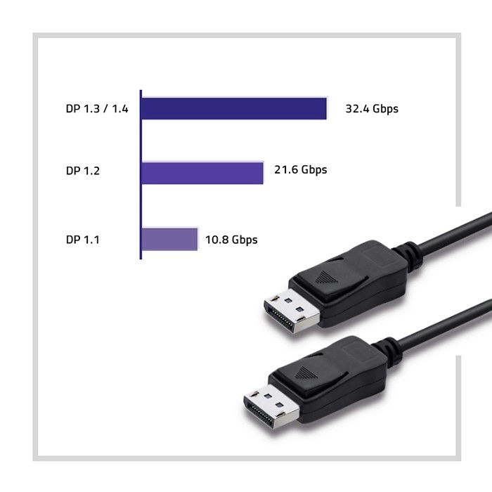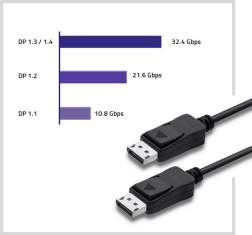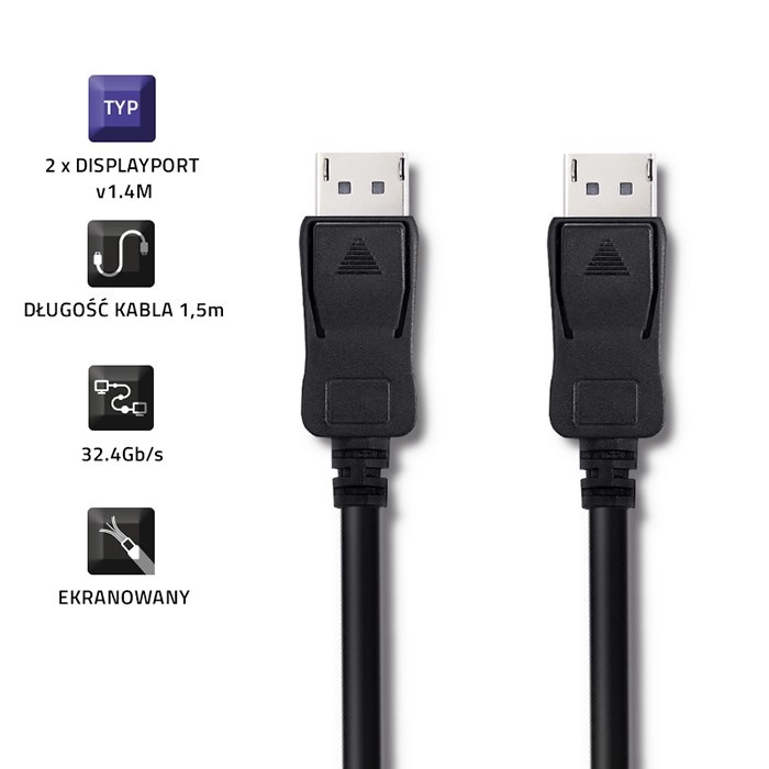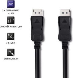 Wysokowydajny kabel DisplayPort 1.4 o długości 1,5 m przesyła obraz i dźwięk w najwyższej jakości aż do 8K, z przepustowością 32,4 Gb/s, wsparciem HDR10, HBR3 oraz technologią DSC dla maksymalnej ostrości i płynności. Idealny do gier, profesjonalnej grafiki oraz multimedialnej rozrywki na wielu monitorach dzięki wsparciu Multi-Stream.