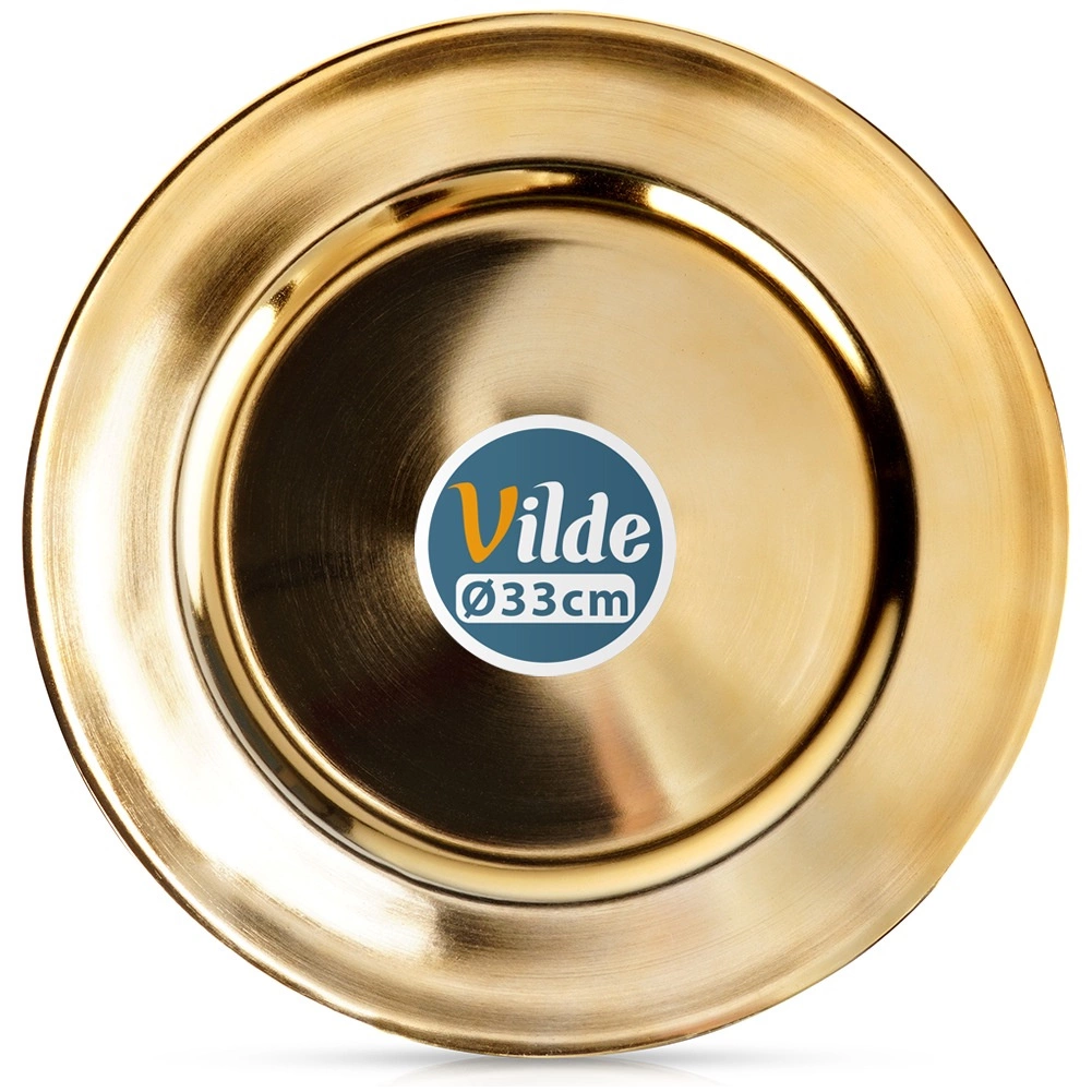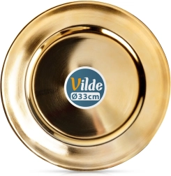Elegancki złoty podkład o średnicy 33 cm nada Twojemu stołowi luksusowy wygląd, ochroni obrus i blat oraz podkreśli serwowanie. Wykonany z wysokiej jakości materiału o wysokim połysku, łatwy w czyszczeniu i doskonały na uroczyste nakrycia, wesela i rodzinne przyjęcia.