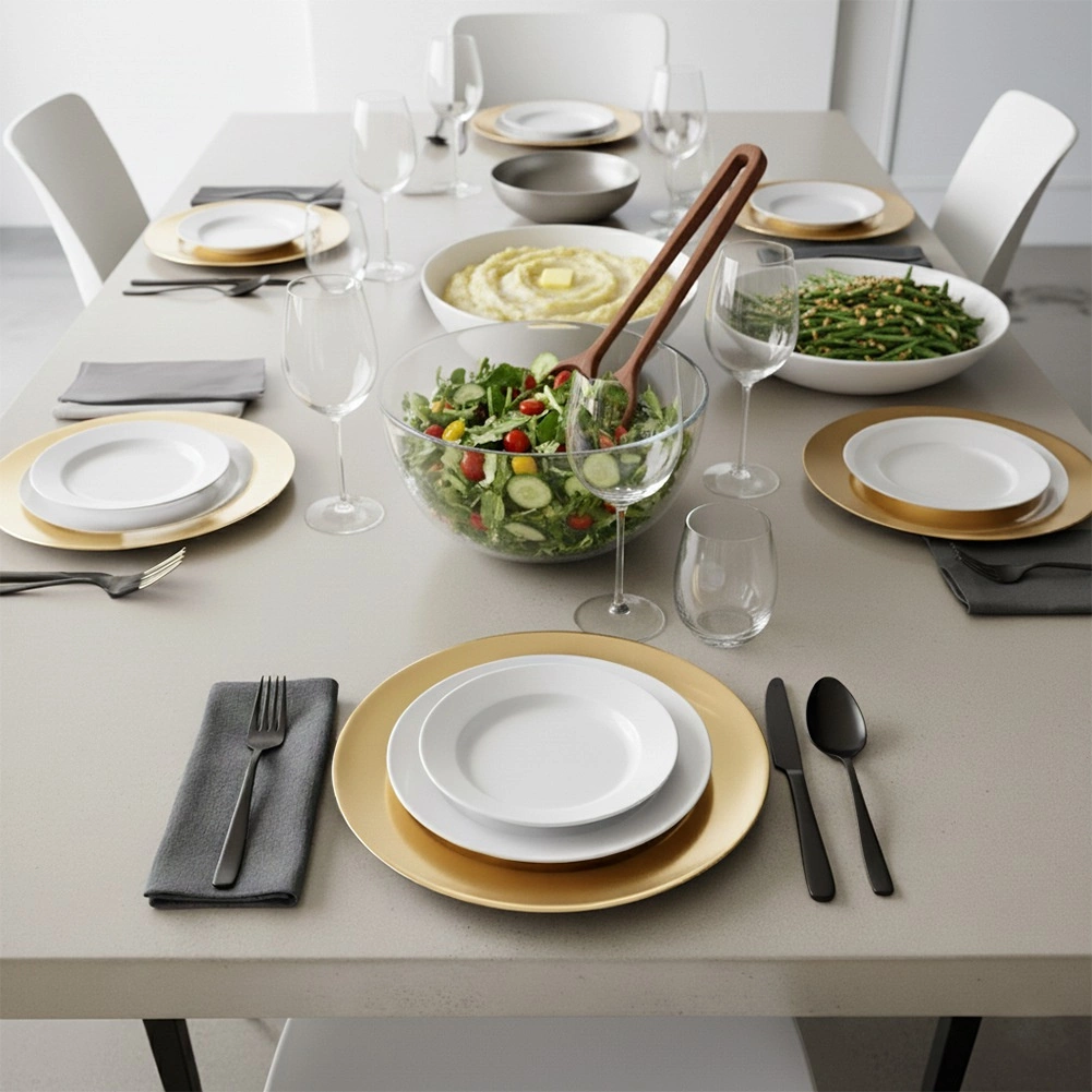 Szeroki rant i metaliczny efekt nadają nakryciu reprezentacyjny charakter – idealny zarówno na odświętne stoły, jak i codzienną elegancję.