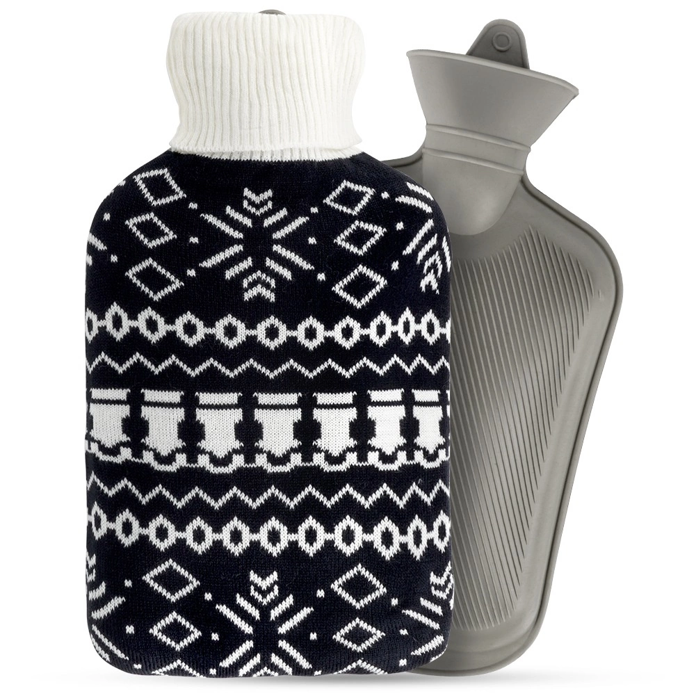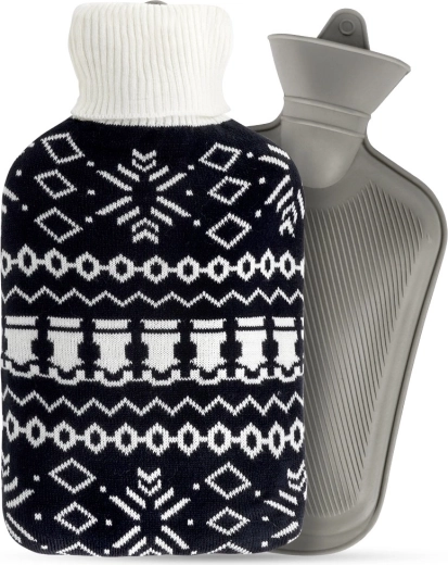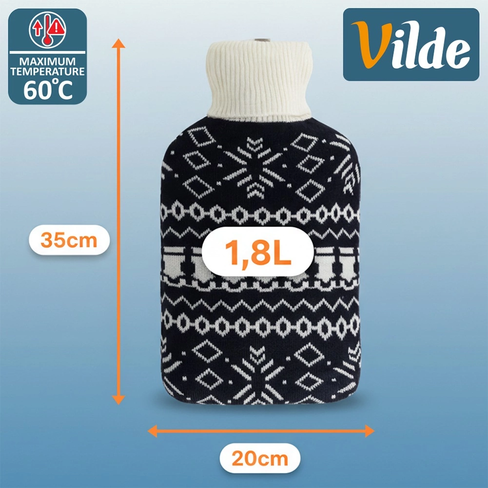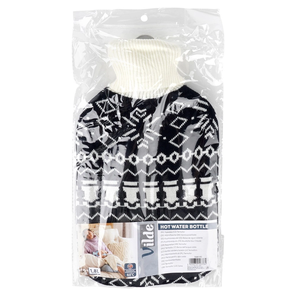 Termofor Vilde o pojemności 1,8 l to niezawodny pomocnik do codziennej pielęgnacji w domu. Dziana poszewka w kontrastowym czarno-białym, nordyckim wzorze jest przyjemna w dotyku, zwiększa komfort i chroni skórę przed bezpośrednim żarem. Dzięki wysokiej jakości gumowej butelce i solidnemu, zakręcanemu korkowi możesz cieszyć się bezpiecznym i długotrwałym ciepłem.