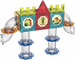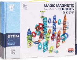 Ten magnetyczny tor kulkowy łączy przezroczyste rurki, zjazdy i magnetyczne panele, dzięki czemu dzieci wyraźnie widzą ruch kulek i naturalnie poznają zasady przyspieszenia grawitacyjnego, pędu i planowania trasy. Elementy automatycznie się przyciągają i mocno trzymają, więc budowa jest szybka, intuicyjna i bez frustracji.