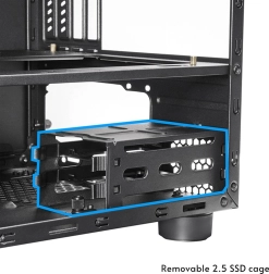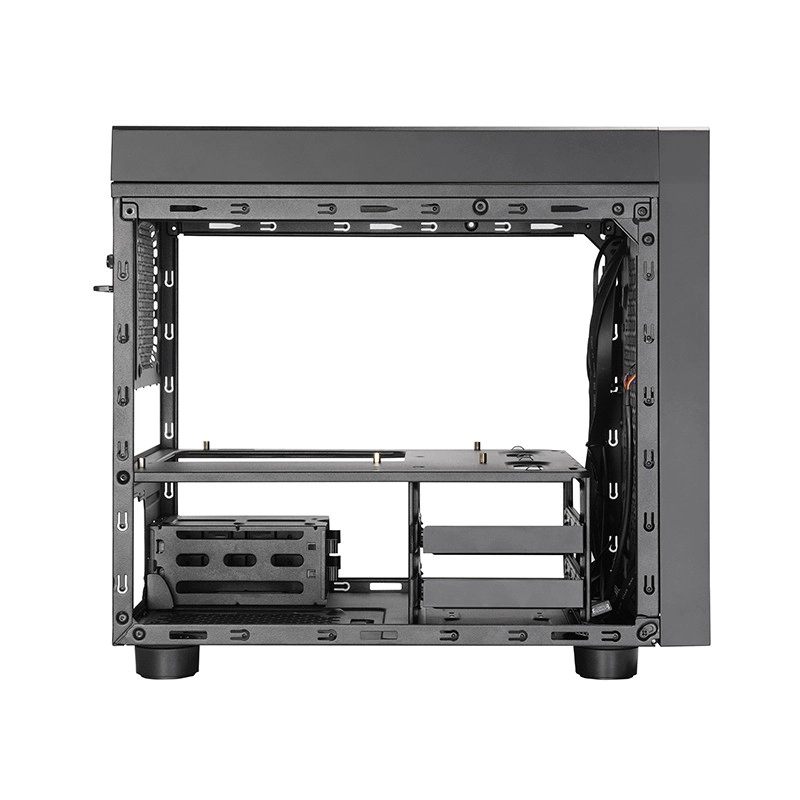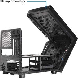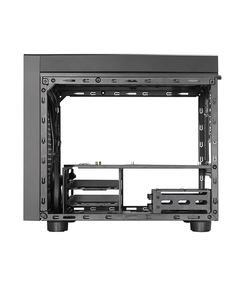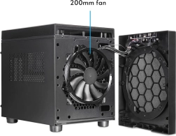 Mimo kompaktowych wymiarów obudowa oferuje szerokie możliwości: mieści zasilacze ATX do 160 mm, chłodzenia CPU do 160 mm oraz karty graficzne do 335 mm. W kwestii chłodzenia można wybrać duże wentylatory 200 mm z przodu i u góry lub montaż chłodnicy 240 mm. Przestrzeń na dane zapewnia kombinacja 2× 3,5" HDD i 2× 2,5" SSD.