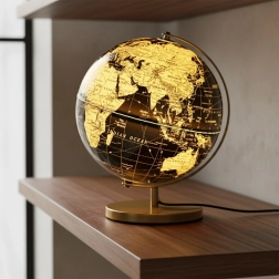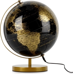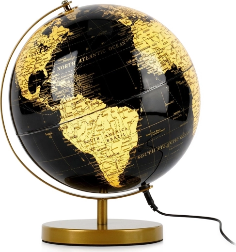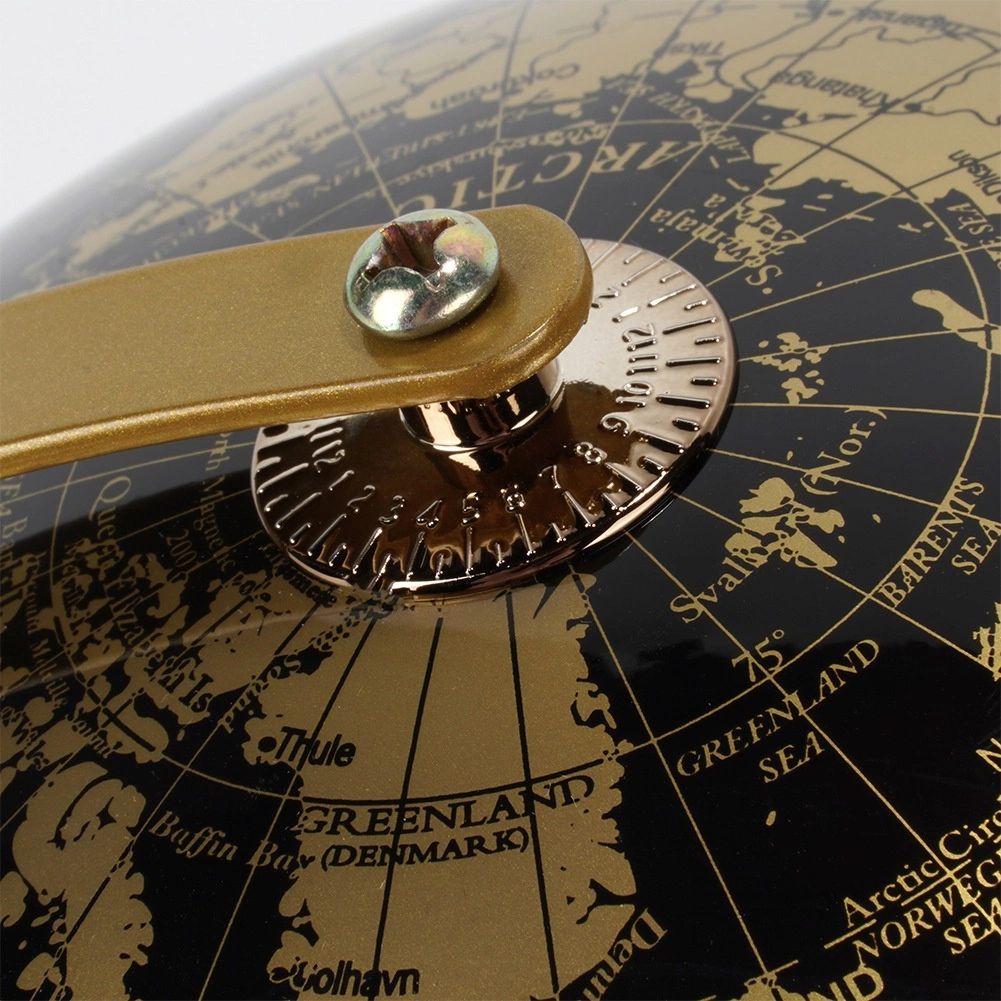 Detaliczne wykonanie globusa w czarno‑złotej kolorystyce oraz stabilna metalowa podstawa nadają Twojemu wnętrzu nowoczesny i luksusowy akcent.