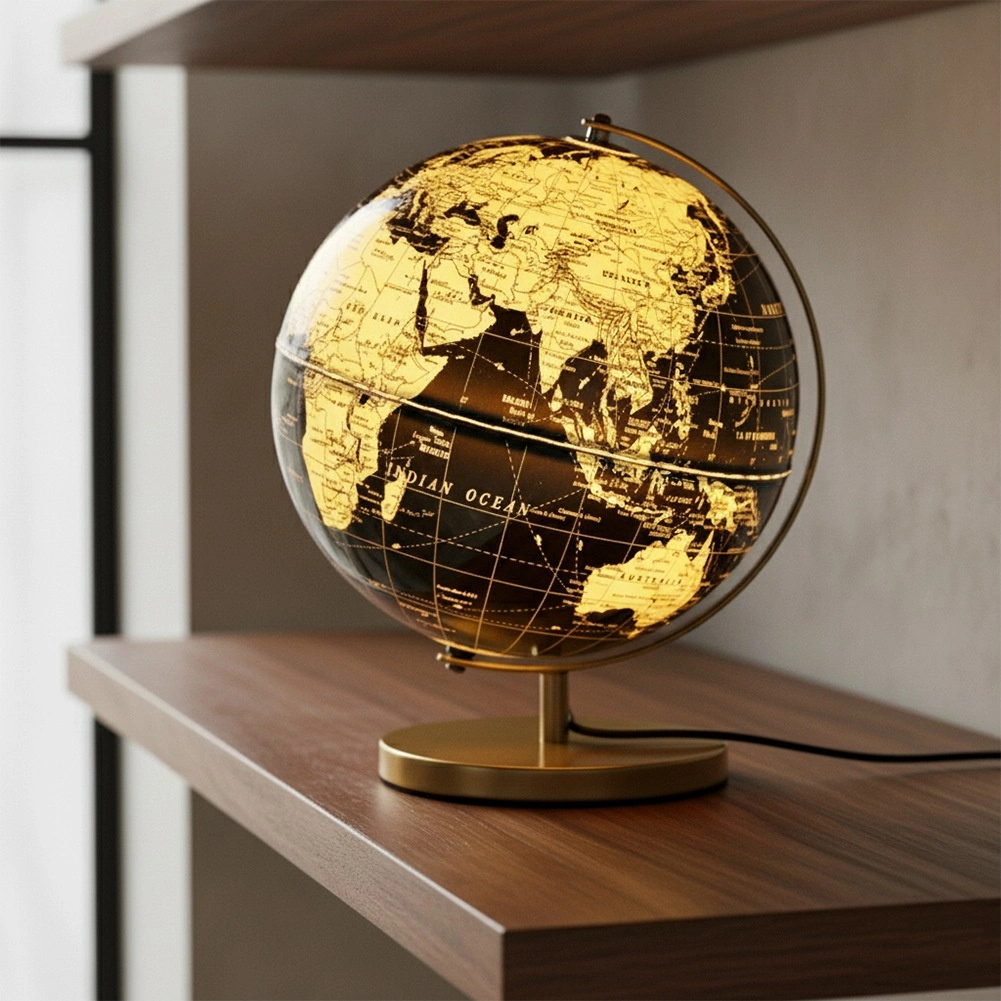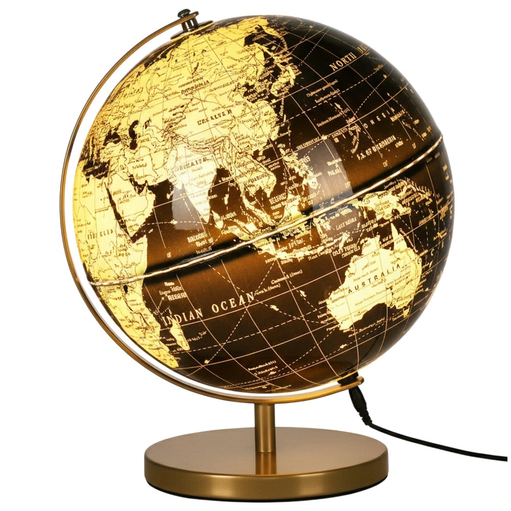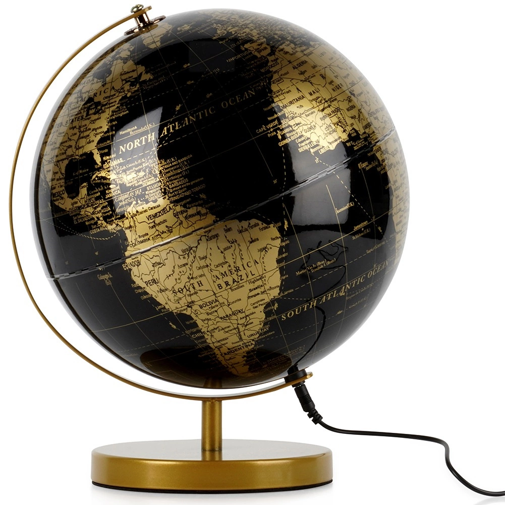 Ta dekoracyjna lampka stołowa w kształcie globusa to praktyczny i estetyczny dodatek do salonu, sypialni lub gabinetu. Czarno‑złote wykończenie z dopracowanymi detalami prezentuje się nowocześnie, a dzięki ciepłemu światłu LED tworzy przytulny nastrój bez oślepiania.