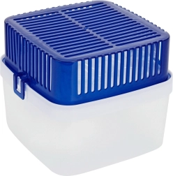 - Tworzywo sztuczne; część górna niebieska, dolna przezroczysta