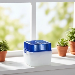 Utrzymuj zdrowy klimat w pomieszczeniach bez użycia energii elektrycznej. Ten pochłaniacz wilgoci w praktycznej, stołowej formie (16 × 16 × 14,5 cm) niezawodnie obniża wilgotność powietrza, ogranicza powstawanie pleśni i grzybów oraz eliminuje nieprzyjemne zapachy. Dzięki przezroczystemu zbiornikowi zawsze widzisz, ile wody się zebrało.