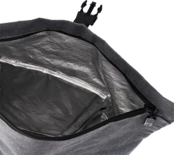 Przemyślana organizacja zapewnia szybki dostęp do rzeczy: przestronna izolowana komora, przednia kieszeń na zamek, boczna kieszeń z siatki na butelkę oraz dodatkowe boczne i tylne kieszenie na zamek na drobiazgi. Rolowane zamknięcie z klamrą pozwala dopasować objętość i bezpiecznie zamknąć zawartość, a górny uchwyt ułatwia przenoszenie.